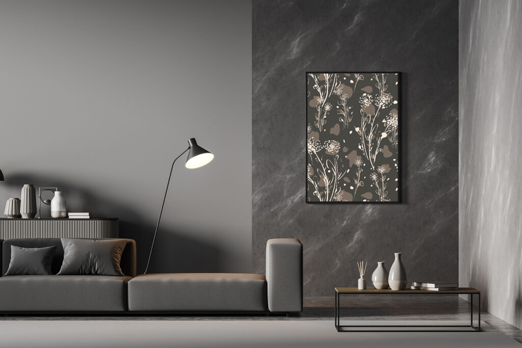 De akoestische print zit in een geanodiseerd aluminium frame. Je krijgt een complete set, die je niet zelf in elkaar hoeft te zetten. Door het anodiseren heeft het frame een slijtvaste laag en gaat het lang mee.